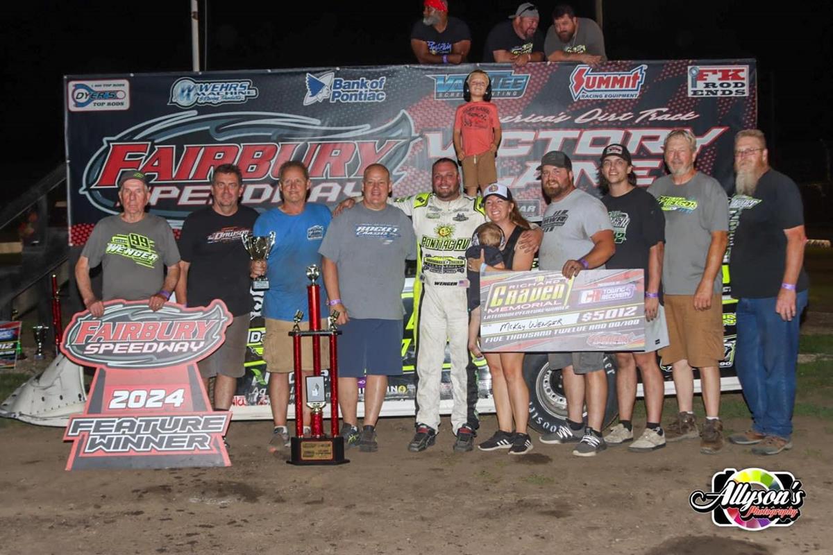 In a field of 29 DIRTcar Late Models on Saturday at Fairbury (Ill.) Speedway for the Richard Craven Memorial, McKay timed in sixth-fastest in his group before placing first in his heat. Winning an exciting late-race battle over Jason Feger and Frank Heckenast Jr. in the feature, Wenger notched his second victory as many nights and eighth overall triumph of the 2024 campaign. He collected the $5,012 top prize ahead of Feger, Heckenast, Mike Spatola, and Ryan Unzicker.